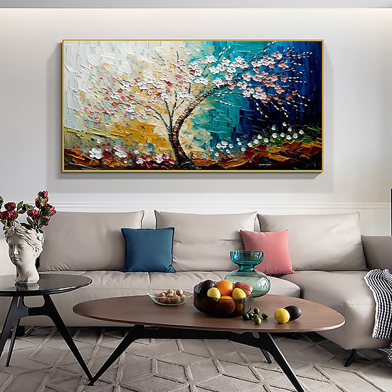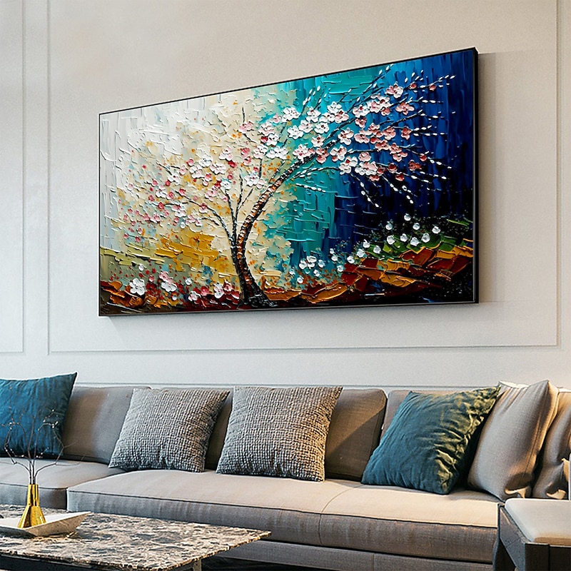 HOT ! Handmade Oil Painting Canvas Wall Art Decor Original Colorful Blooming Flower painting Abstract Floral Painting for Home Decor With Stretched FrameWithout Inner Frame Painting