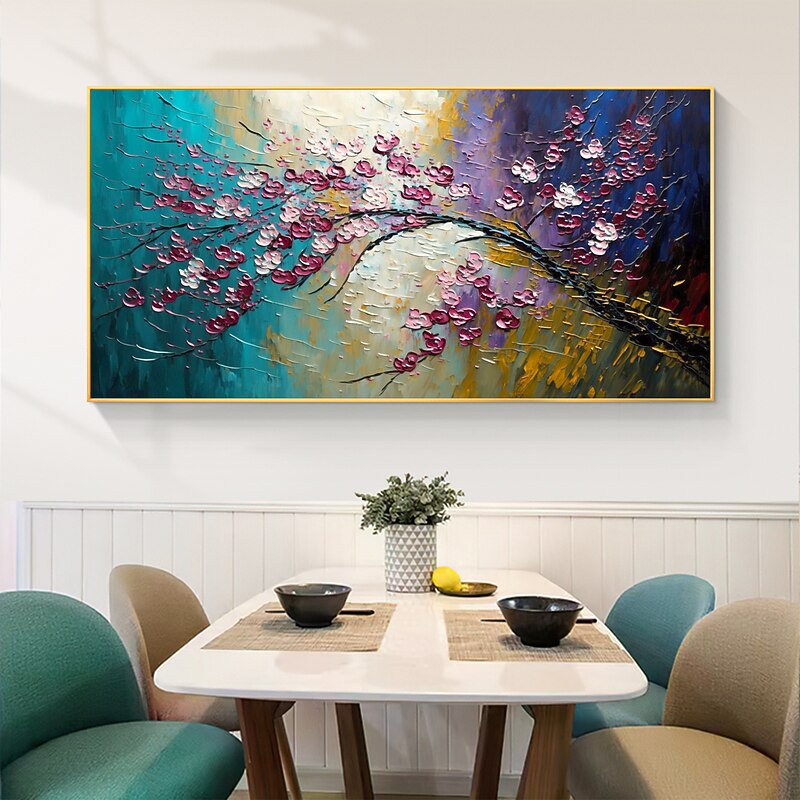 Handmade Oil Painting Canvas Wall Art Decor Original Colorful Blooming Flower painting Abstract Floral Painting for Home Decor With Stretched FrameWithout Inner Frame Painting 1