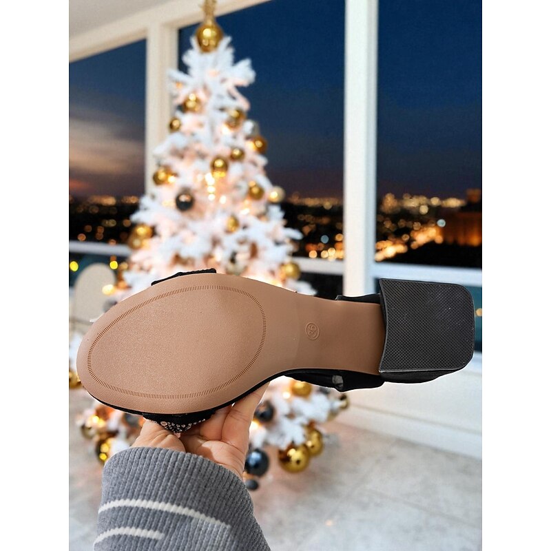 More information about Women's Black Rhinestone Crisscross Block Heel Sandals - Glamorous Open Toe Party Heels for Christmas. New Year's Eve & Evening Events