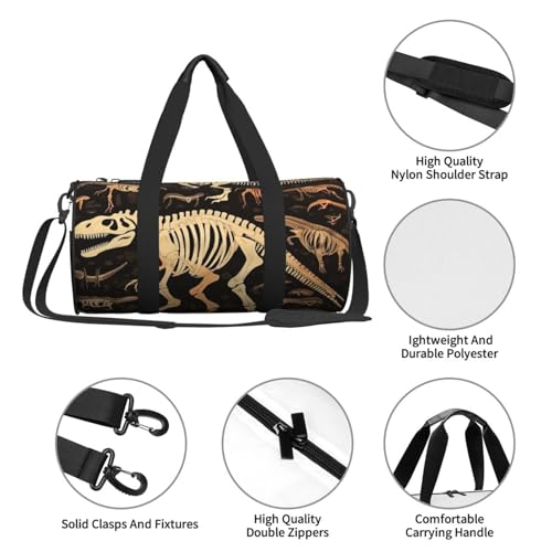 Dinosaur Skeleton Print Duffle Bag for Women Men Personal Item Travel Bags Canvas Weekender Overnight Bag Lightweight Sports Tote Gym Bags Carry On Luggage Bag 1
