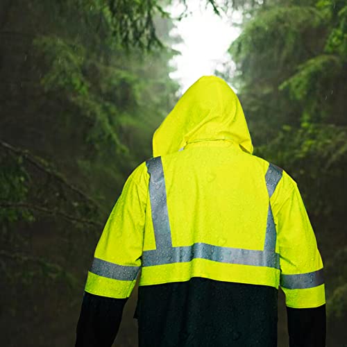 • SAFETY RAIN SUIT –To keep you safe at night, the raincoat is high visibility yellow, designed with highly reflective tape on the jacket and pants. The high reflective tape keeps you high visibility on a misty rainy day. We provide professional customer service before and after your purchase, enjoy our 24-hour response guarantee.
