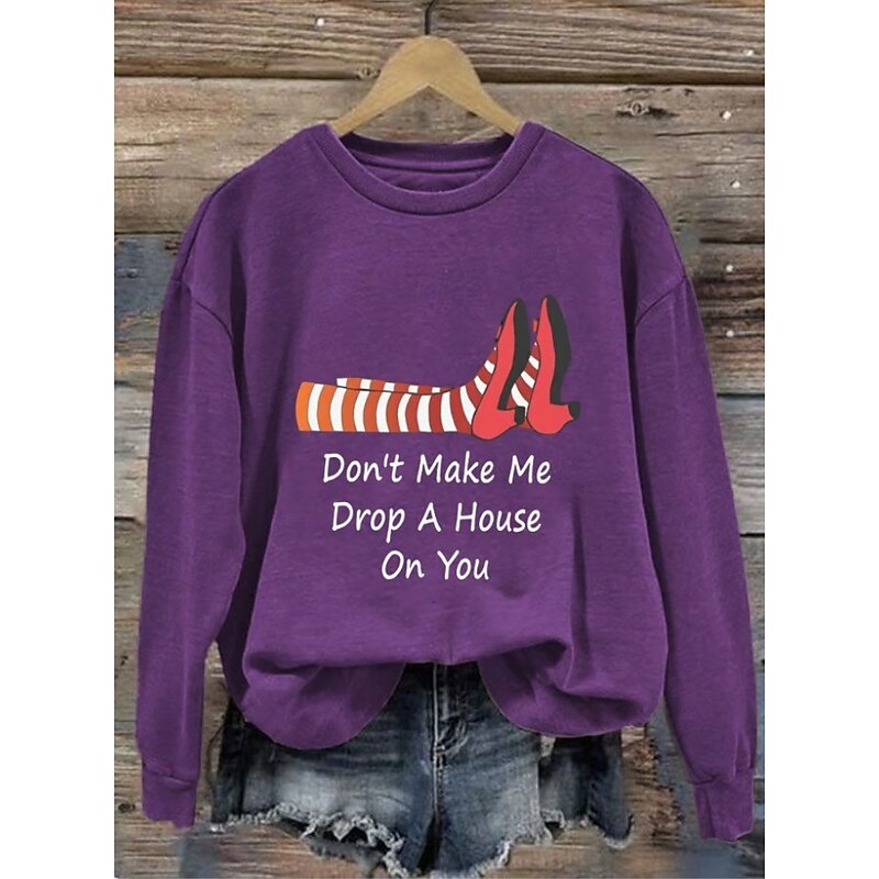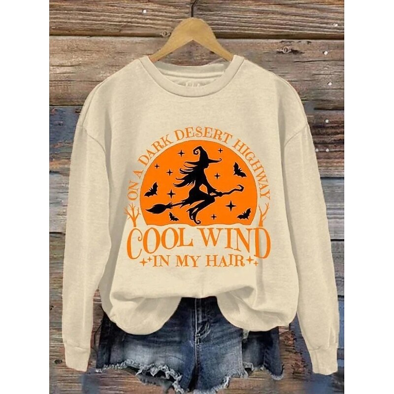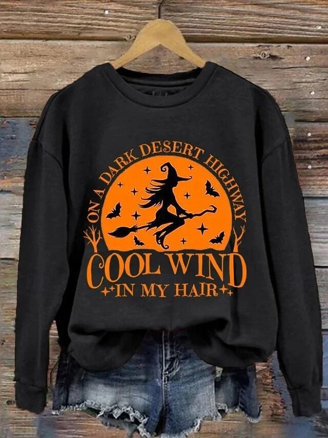 More information about Halloween Women's Pullover Sweatshirt Witch Graphic Skull Fashion Casual Long Sleeve Crew Neck Round Neck Regular Tops Street Dailywear Casual Print Black Purple Orange Green Gray Fall Winter