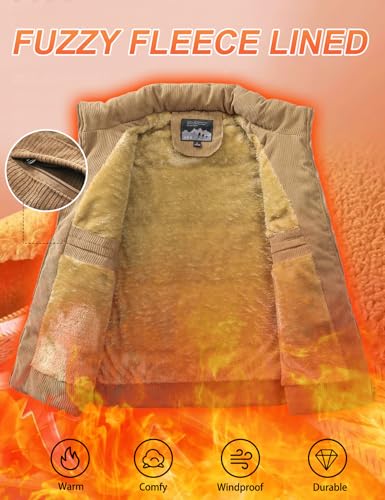 Flygo Mens Sherpa Lined Puffer Vest Corduroy Winter Vests Warm Sleeveless Quilted Fleece Vest Jacket Outerwear 1