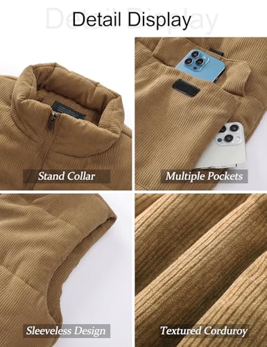 Flygo Mens Sherpa Lined Puffer Vest Corduroy Winter Vests Warm Sleeveless Quilted Fleece Vest Jacket Outerwear 4