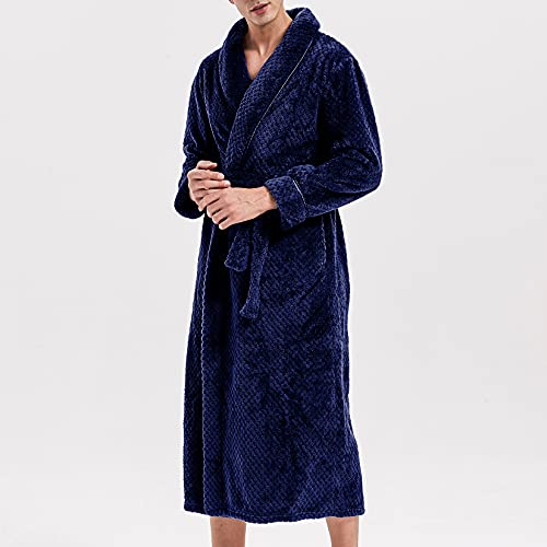 HOT ! Lu's Chic Men's Fuzzy Robe Long Sleeve Bathrobe Fur Cozy Bath House Knee Length Flannel Lounge