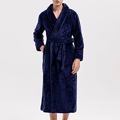 Lu's Chic Men's Fuzzy Robe Long Sleeve Bathrobe Fur Cozy Bath House Knee Length Flannel Lounge 7