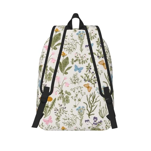 HOT ! Vintage Wild Herb Floral Flower Backpack for Girls Boys Women Lightweight Canvas Bookbag Casual Daypack for Travel Outdoor Camping, 17 Inch