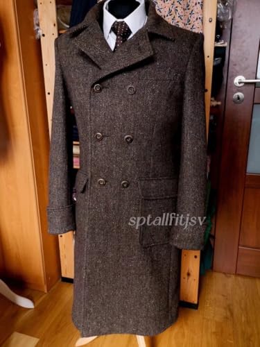 Mens Trench Coat Tweed Overcoat for Men Vintage Herringbone Mens Coat Long Winter Jacket Men Pea Coat 6
