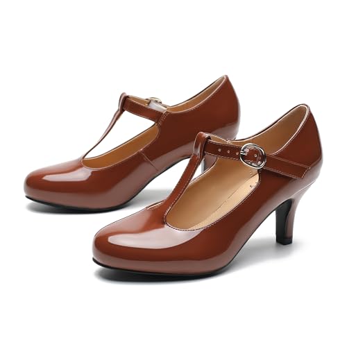 • These high grade pumps Features: round toe, kitten heel, t-straps, adjustable ankle buckle closure dress pumps for women.
