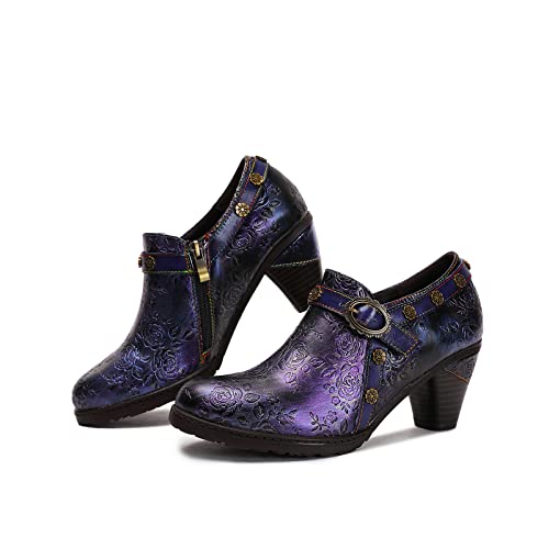 More information about CrazycatZ Leather Pumps,Womens Colorful Vintage Block Heel Floral Oxford Shoes