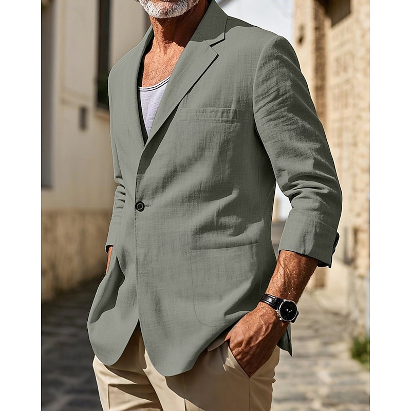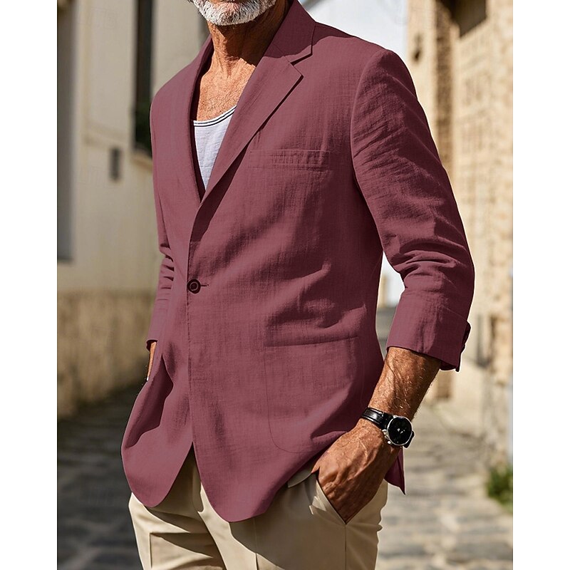 Men's Linen Blazer Blazer Vacation Holiday Wedding Party Fashion Lightweight Spring &  Fall Polyester Linen Plain Pocket Buttons Comfortable Single Breasted One-button Blazer Black Burgundy Dark Navy 19