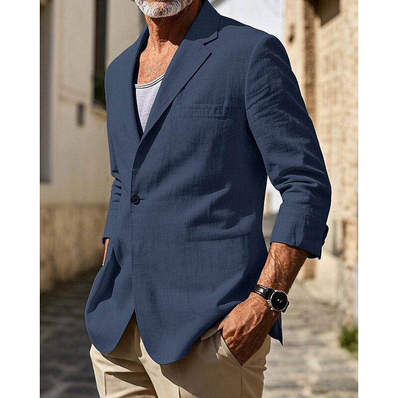 Men's Linen Blazer Blazer Vacation Holiday Wedding Party Fashion Lightweight Spring &  Fall Polyester Linen Plain Pocket Buttons Comfortable Single Breasted One-button Blazer Black Burgundy Dark Navy 17