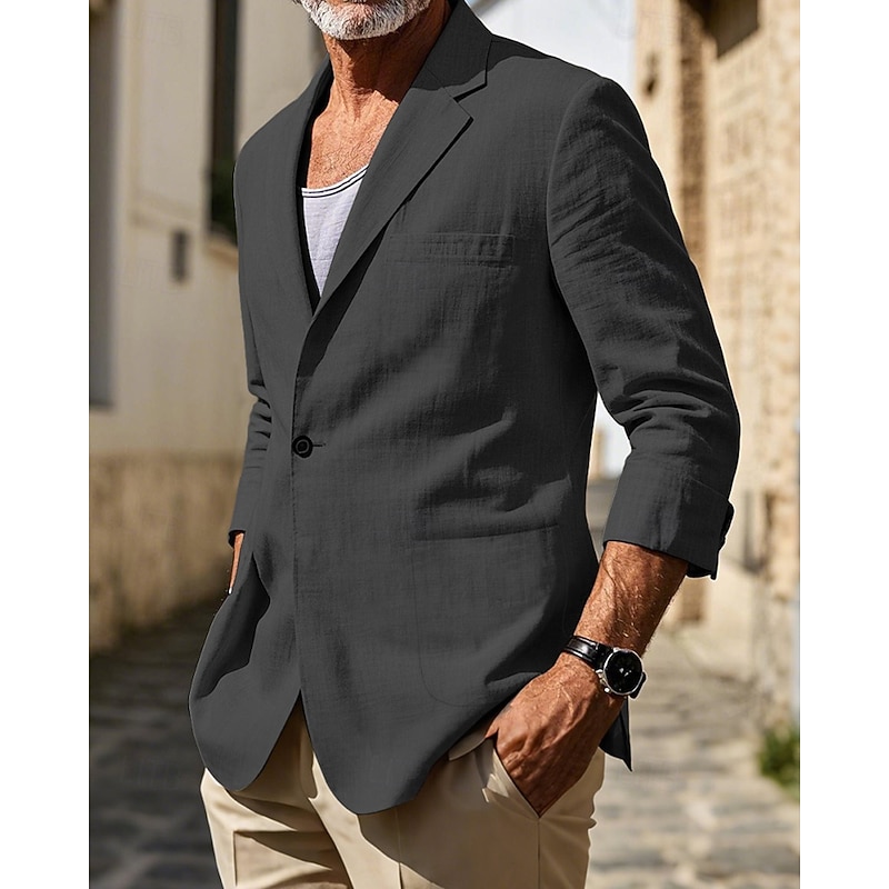 More information about Men's Linen Blazer Blazer Vacation Holiday Wedding Party Fashion Lightweight Spring & Fall Polyester Linen Plain Pocket Buttons Comfortable Single Breasted One-button Blazer Black Burgundy Dark Navy