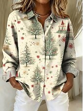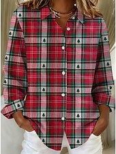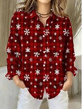 More information about Christmas Women's Shirt Blouse Graphic Geometric Vintage Tropical Stylish Long Sleeve Shirt Collar Regular Tops Daily Patchwork Buttons Print Wine Red Beige Fall Winter