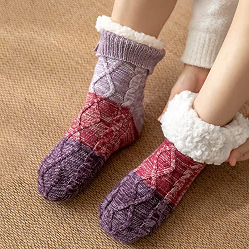 Women'S Winter Warm Cozy Fuzzy Lined With Grippers Slipper Socks Athletic Socks 4