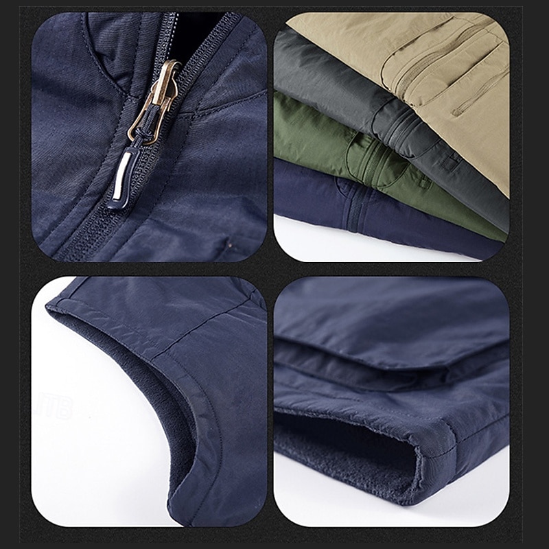 More information about Men's Hiking Vest Hiking Fleece Vest Sleeveless Vest Outdoor Thermal Warm Fleece Lining Comfortable Winter Pocket Multiple Pockets Terylene Army Green Khaki Dark Blue Hunting Fishing Climbing