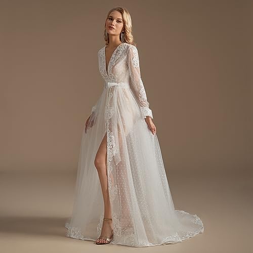 Tulle Bridal Jacket - Long Sleeves Wedding Coat with Sweep Train - Bolero Jacket Lace Wedding Robe 3