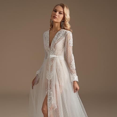 Tulle Bridal Jacket - Long Sleeves Wedding Coat with Sweep Train - Bolero Jacket Lace Wedding Robe 6