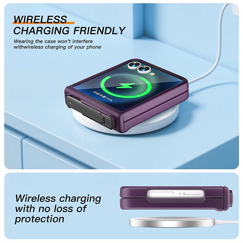 More information about Phone Case For Samsung Galaxy Z Flip 7 Z Flip 6 Back Cover with Stand Holder Support Wireless Charging Shockproof PC