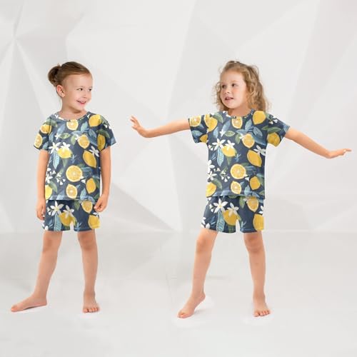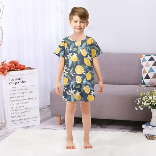 ALAZA Lemon Fruit Blossom Floral Pajamas Short Sleeve 2 Piece Sleepwear Top and Bottom Pajama Set Unisex 2