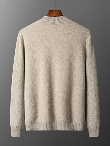 Men Soft Simple Long Sleeve Zipper Solid Cashmere Sweater Thick Warm Casual Mock Neck Plaid Cardigan 4