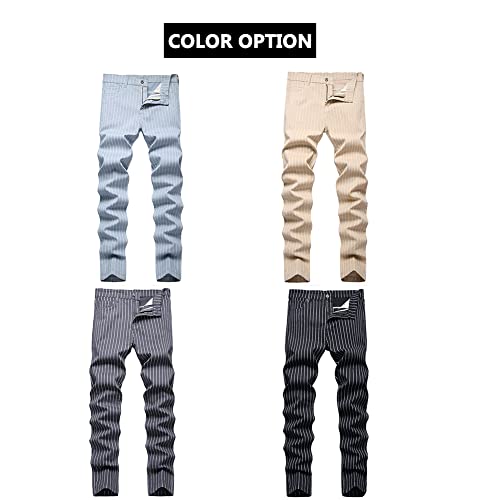 XYGJZ Men's Casual Striped Dress Pants Slim Fit Flat Front Skinny Trousers with Pocket RY05 5