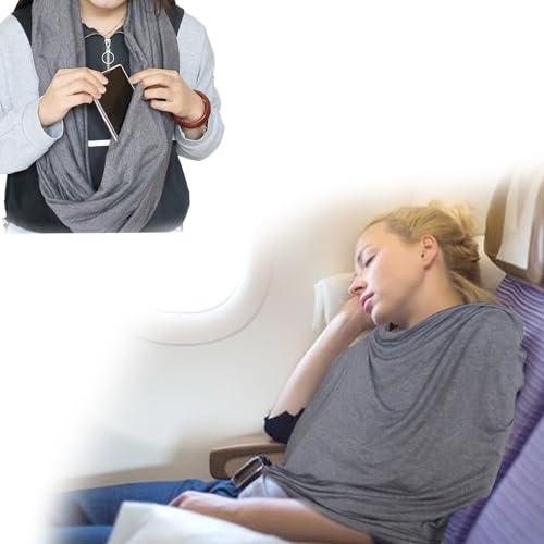 HOT ! Infinity Scarf with Hidden Pockets Converts to Blanket and Wrap Travel Blanket Tube Scarf Wearable Blankets for Women Perfect for Travel, Grey