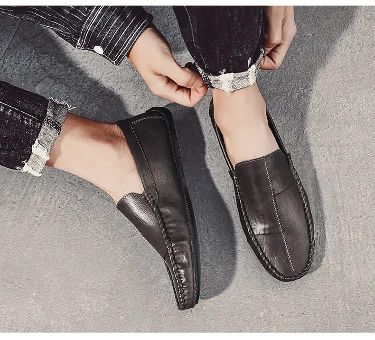 More information about Loafers for Men Stitching Details Round Toe Moccasins Shoes Vegan Leather Comfortable Resistant Lightweight Fashion Slip On