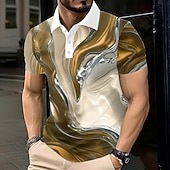 HOT ! Men's Abstract Marble Polo Short Sleeve Polo Shirts Lapel Business Casual Athleisure Daily Wear 3D Print Buttons Summer Blue Gold Green