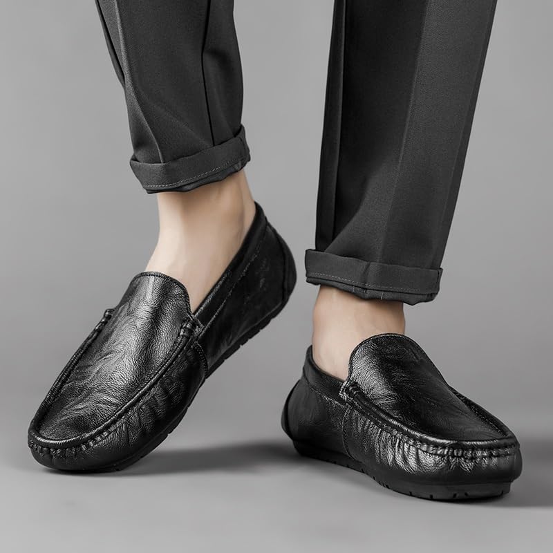 Men's Loafers Shoes Round Toe Faux Leather Loafer Shoes Anti-Slip Comfortable Flat Heel Wedding Casual Slip-ons 6