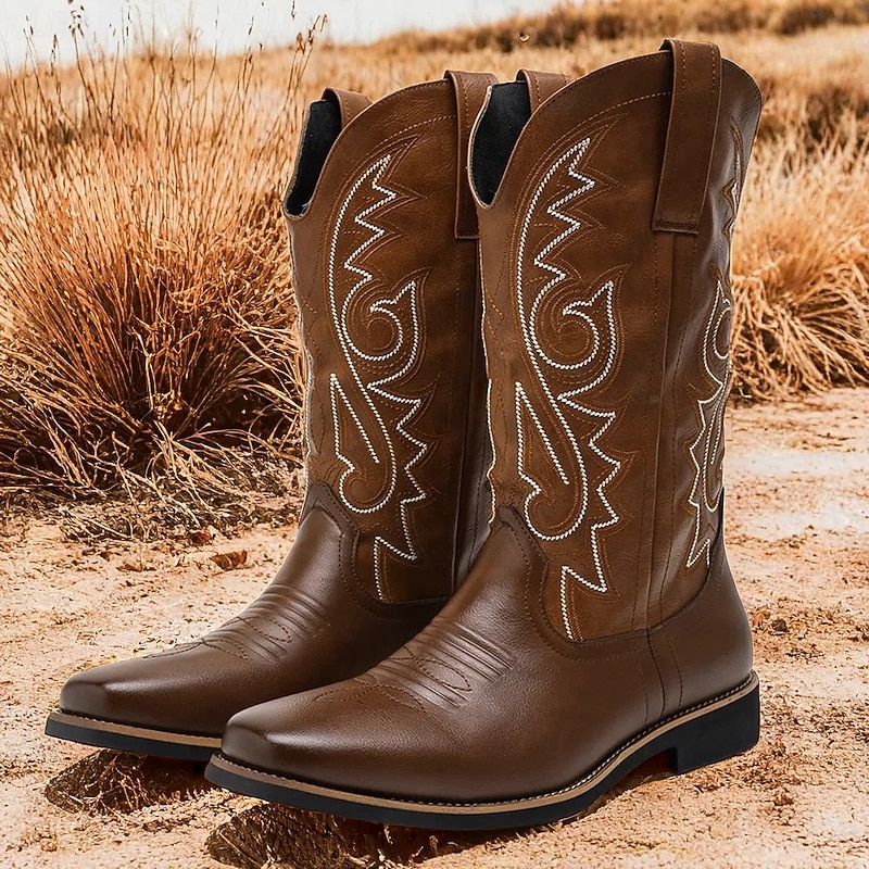 Men's Classic Brown Western Cowboy Boots – Durable Leather with Detailed Embroidery for Outdoor and Casual Wear 1
