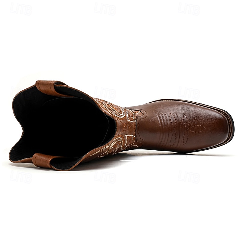 Men's Classic Brown Western Cowboy Boots – Durable Leather with Detailed Embroidery for Outdoor and Casual Wear 6