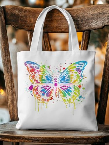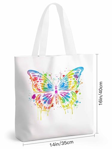 Canvas Tote Bag for Women,Colorful ButterflyWatercolor Animal 6