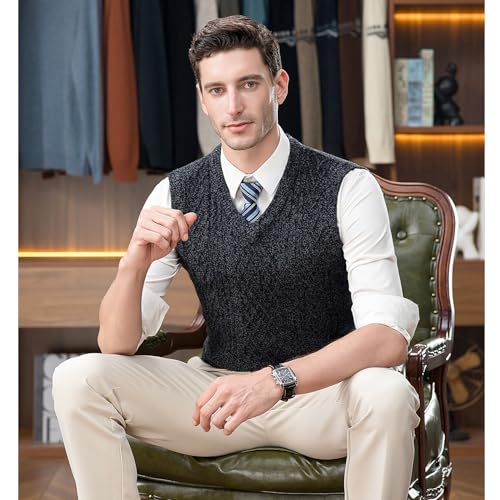 Men’s Cable Knit Sweater Vest 100% Wool V-Neck Sleeveless Knitted Pullover for Fall Winter 7