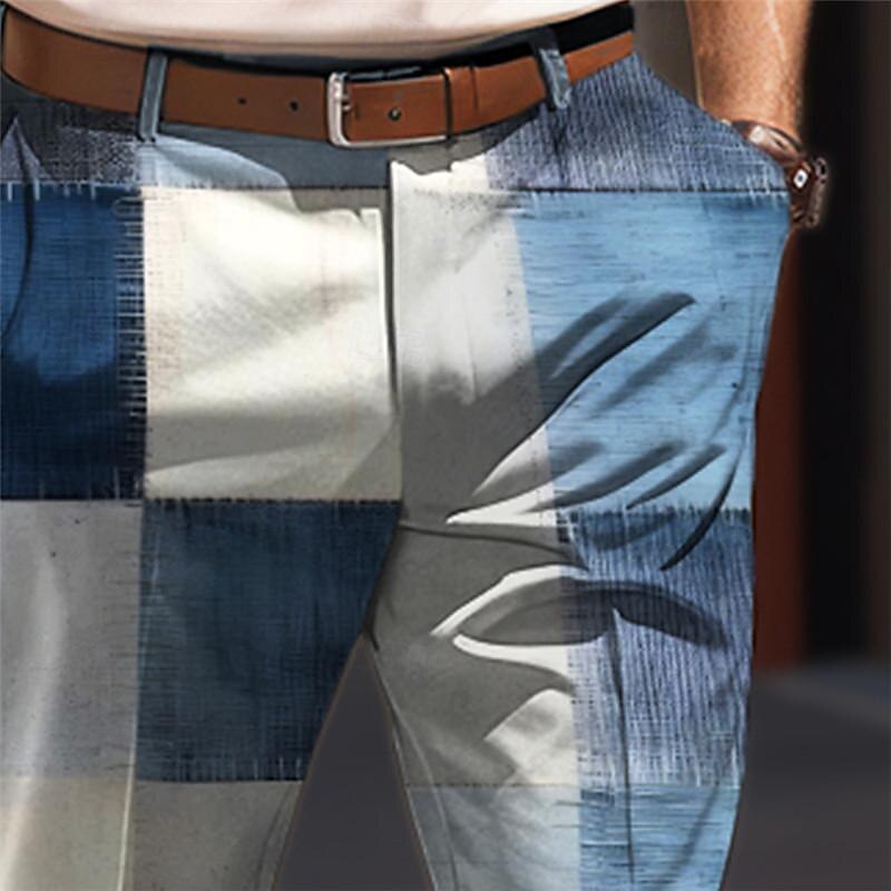 Plaid / Check Business Casual Men's Business 3D Printed Dress Pants Flat Front Straight-Leg Relaxed-fit Polyester Medium Waist Pants Outdoor Street Wear to Work Daily Wear S TO 3XL