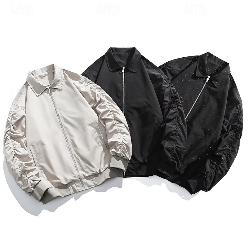 More information about Men's Jacket Casual Jacket Outdoor Vacation Warm Zipper Pocket Fall Winter Plain Fashion Streetwear Standing Collar Regular Apricot Black Jacket