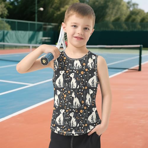 Boys Tank Top Shirts Dog and Flower Lovely Puppy Sleeveless T-Shirts Crew Neck for Kids Clothing Children 6