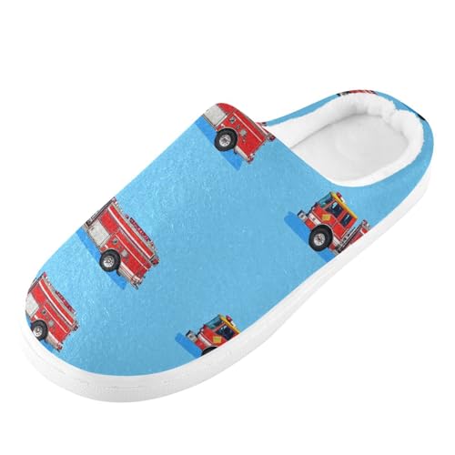 JUNZAN Fire Fighting Truck Royal Blue Women Cotton Slippers Soft Memory Foam Ladies Slippers for Hotel Funny Presents 6-7 5