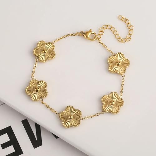 Clover Jewelry Set 18K Gold Plated Stainless Steel Necklace with Flower Design Four leaf clover for Women, Elegant Four Leaf Clover Necklace Floral Style Jewelry 4