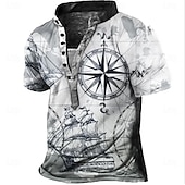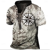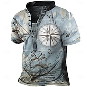 More information about Men's Compass T Shirt Henley Shirt Tee Short Sleeve Designer Vintage Style Basic Daily Summer Blue Light Gray Khaki Henley Henley T-Shirt