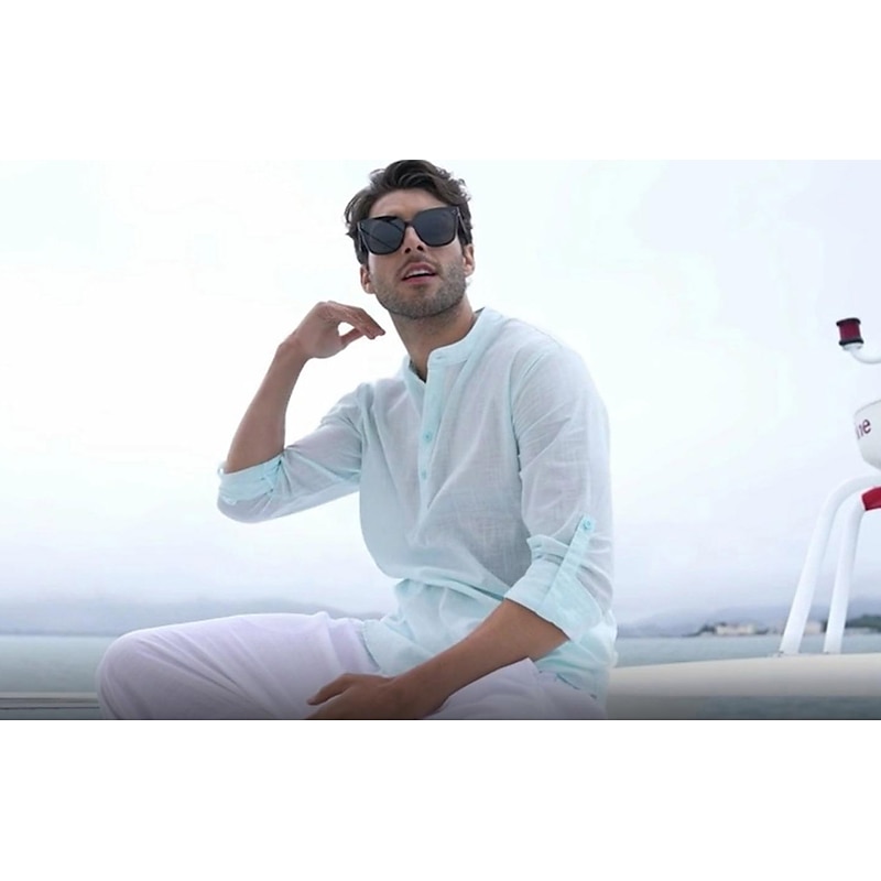 Men's Hiking Shirt Henley Shirt Tee Tshirt Top Outdoor Breathable Quick Dry Lightweight Sweat wicking Summer Spring Cotton And Linen Light Blue Navy Denim Blue Fishing Climbing Beach 7