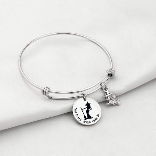KUIYAI Halloween Witch Gift Not Every Witch Lives Bracelet Witch On Flying Broom Pendant Bangle Funny Halloween Jewelry 3