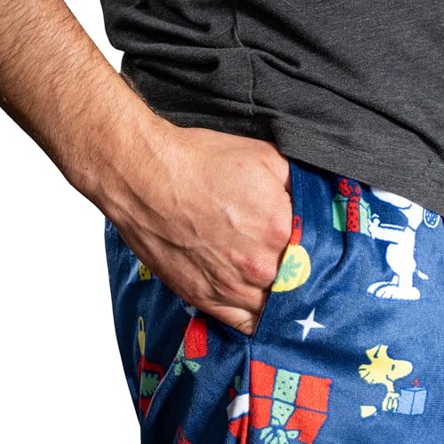 • Celebrate the holiday season with the Peanuts Snoopy and Woodstock Christmas lounge pants, featuring an all-over festive design of Snoopy and Woodstock with presents. These ultra-soft pajama pants are perfect for cozying up on cold winter nights.