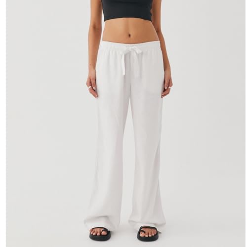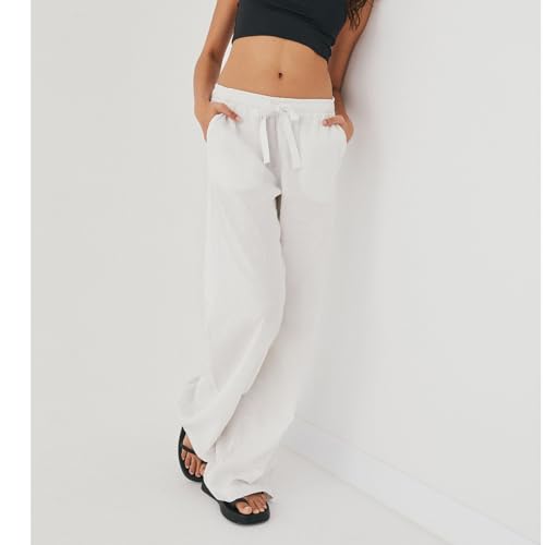 HOT ! Wide Leg Pants for Women Elastic Waist Drawstring Palazzo Linen Pants Causal Summer Beach Pants with Pockets