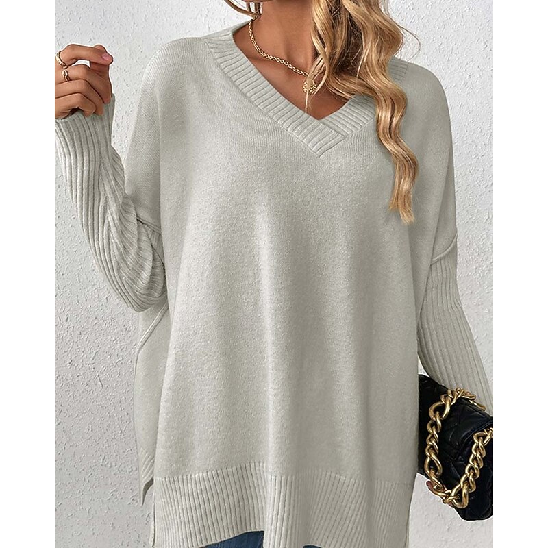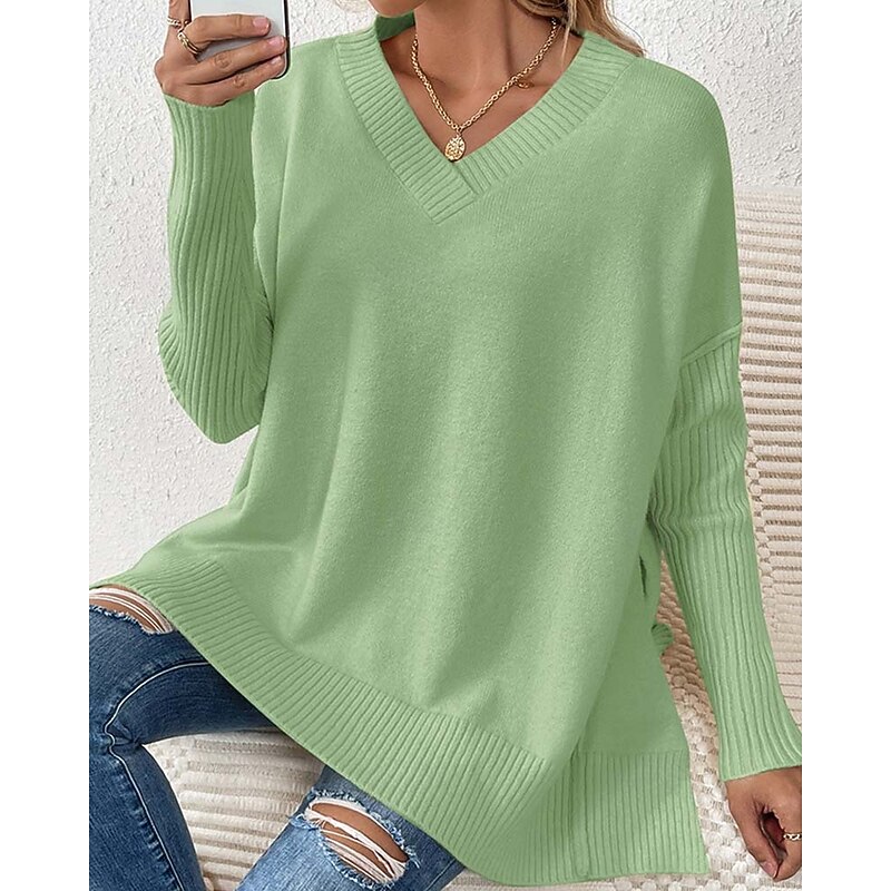 More information about Women's Sweater Elegant Fashion Daily Solid Color V Neck Knitted Long Sleeve Long Tops Knit Work Black Yellow Fall Winter