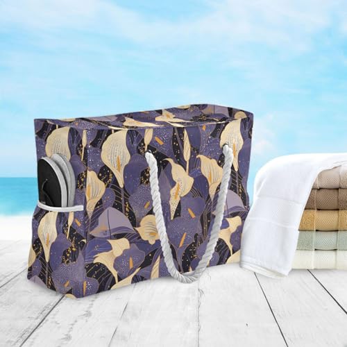 Chic White and Purple Calla Lily Vintage Large Capacity Large Work Tote with side pocketes Beach Bag Tote for beach&school&work 5