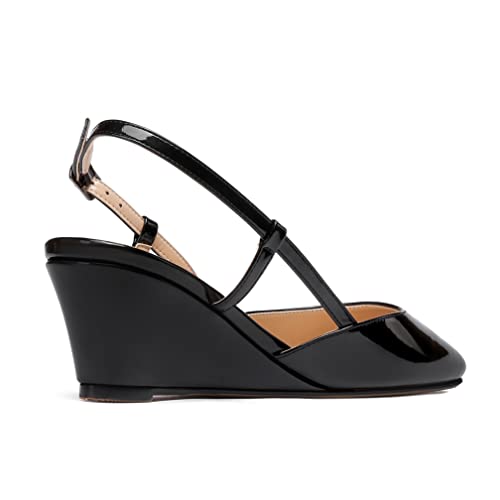 WAYDERNS Women's Patent Square Toe Slingback Solid Buckle Strap Wedge Low Heel Pumps Shoes 2 Inch 3