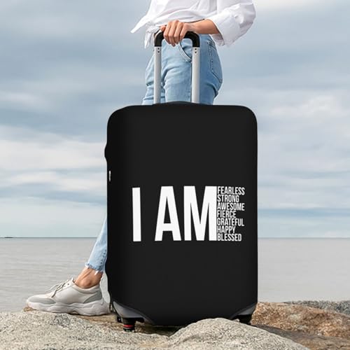 HOT ! I AM Fearless, I AM Strong, I AM Blessed Travel Luggage Cover Suitcase Protector Fits 18-21 Inch Case(Black,S)