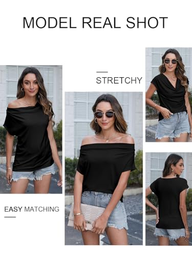 Poetsky Summer Womens Fashion Dressy Tops Short Sleeve Cowl Neck Shirts Trendy 2025 Classy Casual Outfits Ladies Top Blouses 2