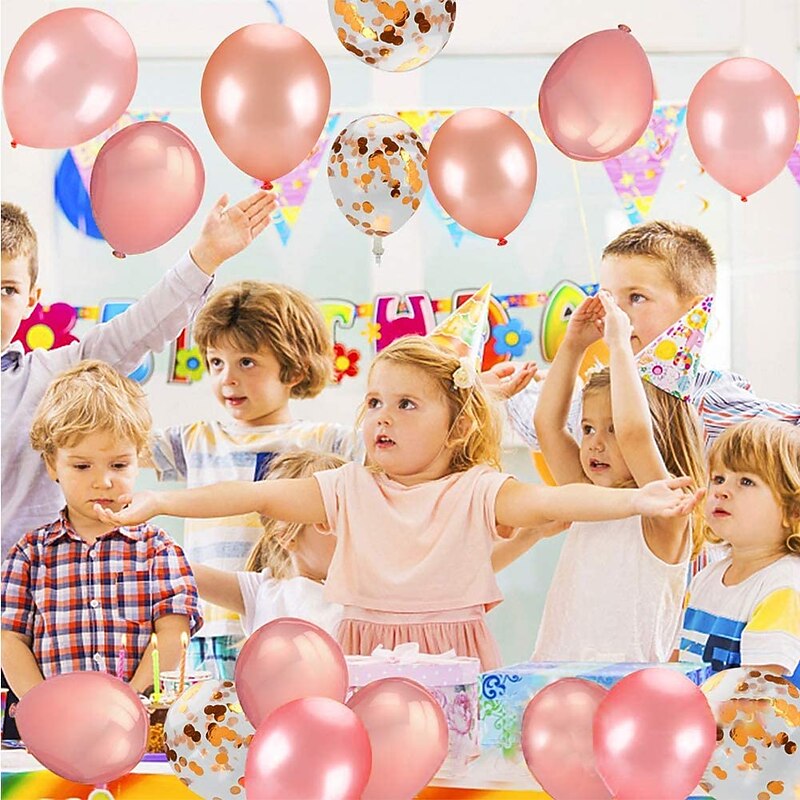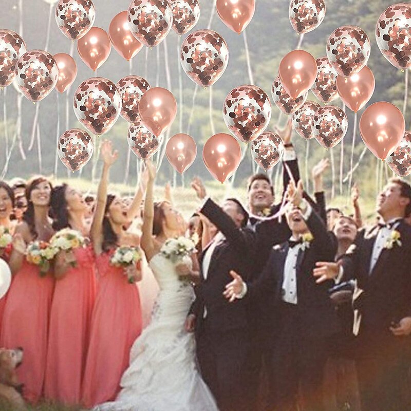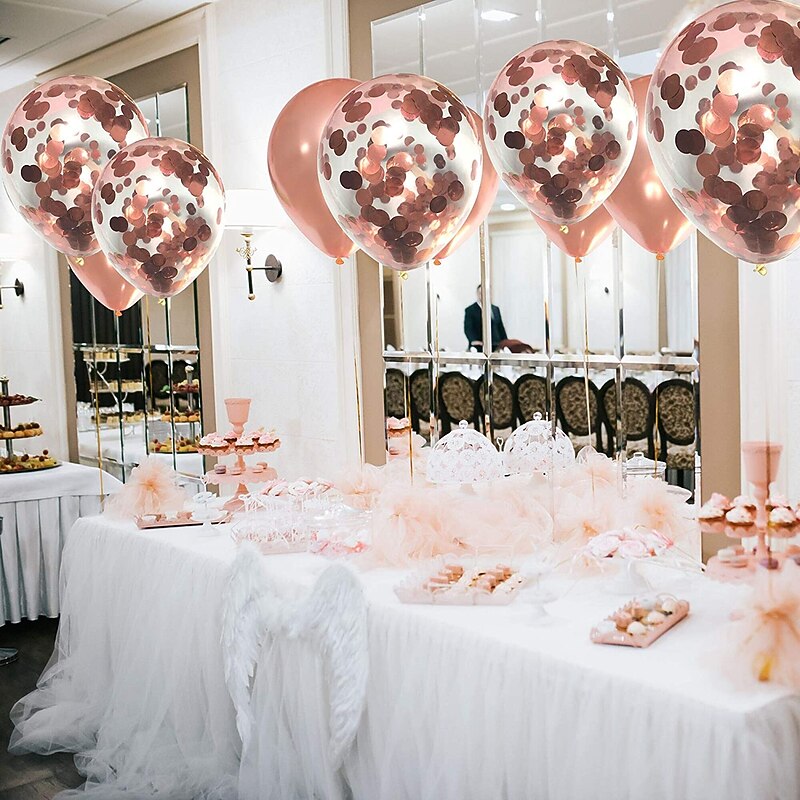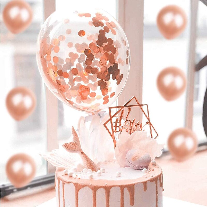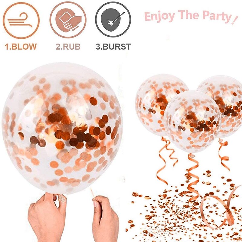 Rose Gold Confetti Latex Balloons, 12 Inch Birthday Balloons with Rose Golden Paper Confetti for Wedding Engagement Party, Graduation Party, Birthday Party Decorations (30 Pcs) 5